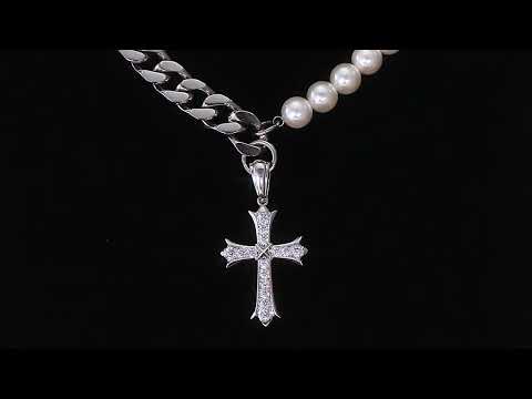 The combination of stainless steel links, creamy white pearls, and an iced out cross creates an appealing contrast, adding an elegant touch to the overall design. This necklace offers a harmonious blend of strength and sophistication, making it a versatile and eye-catching accessory for various occasions.